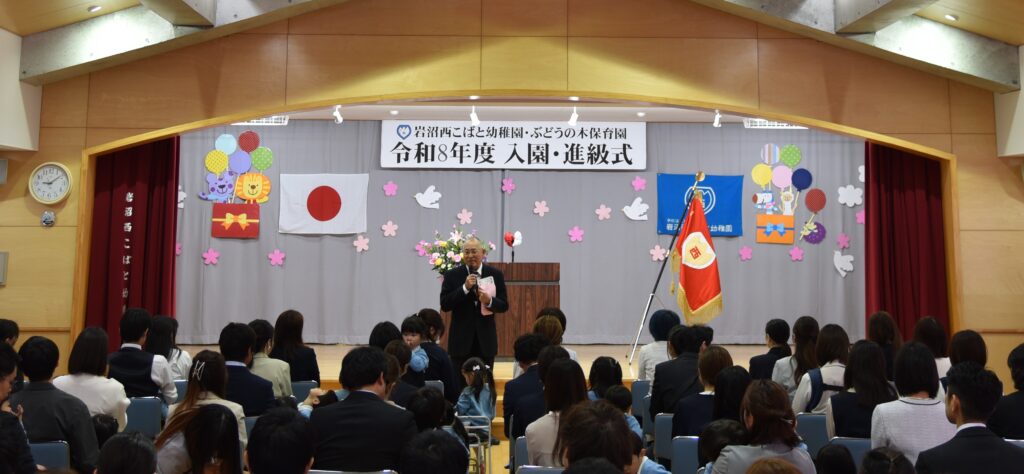 やわらかな春の陽ざしに包まれ、幼稚園部の入園・進級式を行いました。少し緊張した面持ちの子どもたちでしたが、園長のあたたかな挨拶に耳を傾けるうちに、次第に表情も和らぎ、新しい園生活への期待が感じられました。保護者の皆さまに見守られながら、一人ひとりの新たな一歩が始まります。これからの成長が楽しみです。